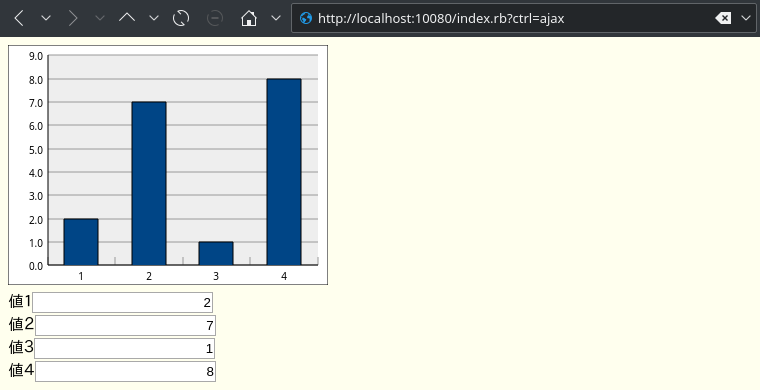 - 数字を変えると、棒グラフもリアルタイムに変わる。